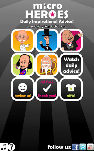 the next time you hear them. Surely you have at least a thing or two to learn from a peaceful man that led a revolution, or the U.S. president during the American Civil War, or one of the greatest playwrights of all time. You can learn so much more from this Android application than you would from a "Magic" 8 Ball. There's even a daily video or daily advice that you may watch from YOUTUBE. If you do choose to download MicroHeroes Magic 8 Ball, congrats, Your Smartphone just got smarter. Most likely you will get smarter as a result too.