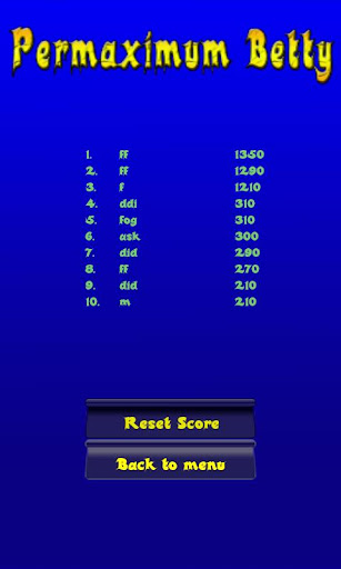 Some nice features are that the platforms are bright and clear so it is easy to tell where the platforms are at. The background is dark so the contrast between the platforms and background are distinguishable. Top Scores are always something to look at right? Well, this app has that too, although I think it should have a confirmation button before letting you delete and reset the High Scores. The name of the game, Permaximum Betty, is a unique name for an application and should definitely be easy to find once you know the name. This way your searches for the game should be fairly easy. No advertisements here to get in the way during gameplay. There is a FREE TRIAL version, Permimum Betty (demo), which allows you to play up to 600 points. After reaching that limit, and a big purple line, the platforms no longer support Betty and she falls to her demise. However, there is hope for Betty. By getting the full version for $1.46, not necessarily an arm and a leg, you get to help extend her platform jumping experience!