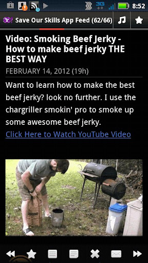 Are you lacking some traditional skills and need to learn them? Or are you just eager to learn more useful skills? Either way, Save Our Skills - DIY / How-To by AppVirtue can really help you out. Learn how to make Habanero hot sauce, hot cider, and BEEF JERKY. Learn to build a top bar bee hive, a $20 PVC photo studio, a DIY PVC Green House/ Cold frame, and more. Saveskills has 385 subscribers and 250,000+ video views on Youtube. They must to be doing something right to be getting that many views. Below is a good summary of the app by the developer in one sentence.
